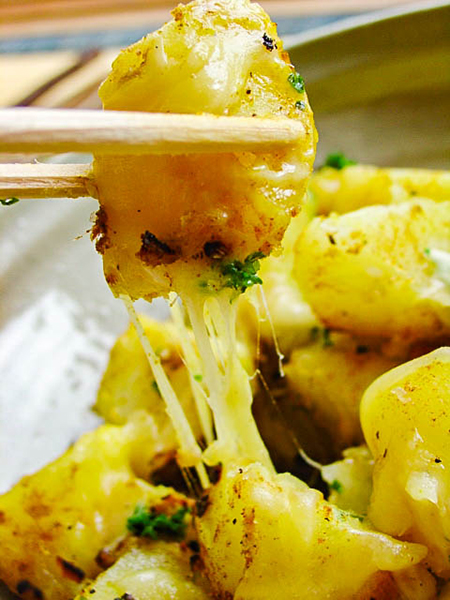じゃがいものカレーチーズ炒めの紹介です。スパイシーな味付けは、インド風のエスニック料理。ポテトをカレー粉やターメリック、クミンシードパウダーで炒めると、ピリッとした風味が食欲をそそります。ご飯のおかずにも酒のおつまみにもよく合います。