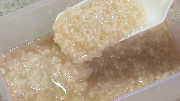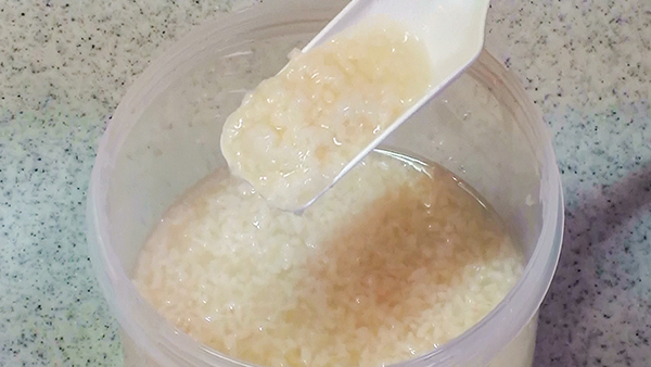 完成後は容器のふたをぴっちりと閉めて、冷蔵庫で保存しましょう。半年くらいは日持ちするそうです。保存中にも発酵が徐々に進み、熟成は3ヶ月で完了し、とろりとした粥状になりますが、その後は変化しないそうです。よほど麹に精通して手入れをしているケースだと思いますが、1年以上熟成させながら使っている方もおられます。念のため、3ヶ月をめどに早めに使い切りましょう。