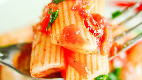 トマトソースはしっかり煮詰めると、ペンネとよく絡みます。ゆで汁を少し残しておき、トマトソースが煮詰まりすぎてペンネに絡まりにくい時は、ゆで汁でのばしましょう。