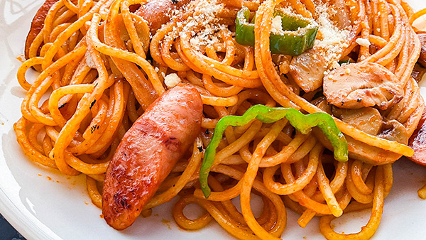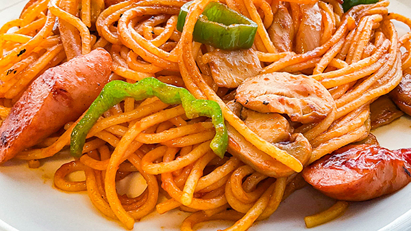- こちらは、焼きケチャップで作る昭和ナポリタンの動画です。