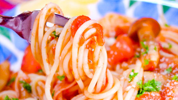 ワンポイントアドバイス:スパゲティを少し長めにゆでると、水分を吸収し、もちもちした食感になります。