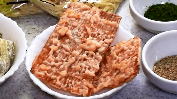 クレープでふたをして焼いていた時は、キャベツは甘くておいしいのですが、クレープの焼きが足りないと、もちもちとした団子を食べているような食感のときがありましたが、それが解決しました。外側がカリッとして水っぽさが飛びました。