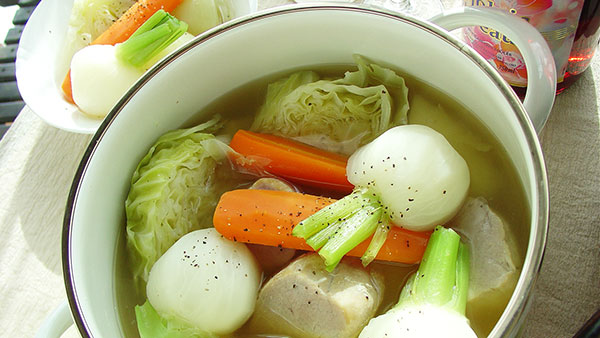 マロンのワンポイントアドバイス:ポトフは澄んで濁らないスープが美味しいので、ふたをせずに煮ましょう。